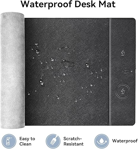 【Super Smooth Surface】 Our wireless charging desk pad is crafted with premium microfiber leather fabric, offering a surface with an unparalleled smooth touch, enhancing the precision of your mouse control and elevating your user experience