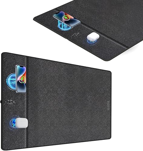 【XL Size with 3-in-1 Functionality】 Hi-HONX XL large mousepad measures 23.4 inches × 15.6 inches, the extra-large surface area easily accommodates your keyboard, mouse, and other desk items, making it perfect for both gaming and working. Combines three essential functions in one: wireless charging, mouse pad, and desk protection. This multi-functional design keeps your desk organized and clutter-free