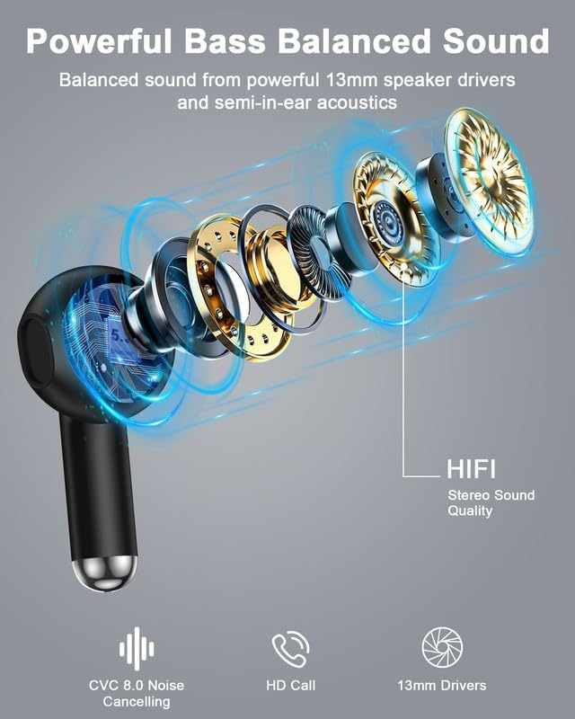 【Hi-Fi Stereo & Deep Bass Sound】- Premium 10mm dynamic drivers deliver crystal-clear highs, balanced mids, and rich deep bass for immersive music, movies, gaming, and calls. Perfect alternative to AirPods or Galaxy Buds.