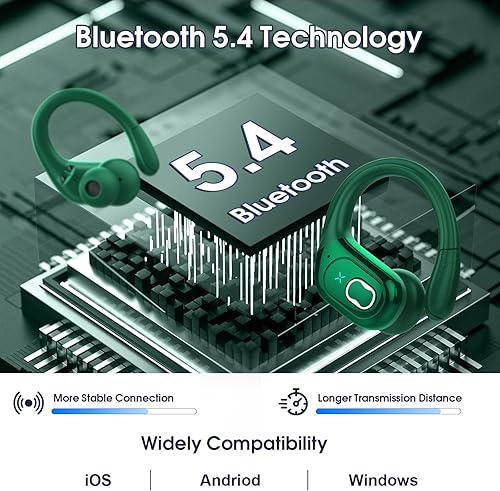 Hi-Fi Deep Bass Stereo and Crystal Clear Calls: Bluetooth earphones 14.2mm large size speaker driver delivers powerful bass, mellow midrange, and clear treble, reproducing your music vividly to power your workout. Noise cancelling headphones are equipped with high quality ENC noise reduction mics to passively cancel 80% background noise so you and the caller can hear each other better and make crystal-clear calls with minimal background noise. Enjoy top-notch conversations wherever you are.