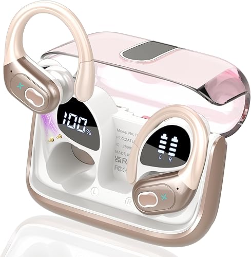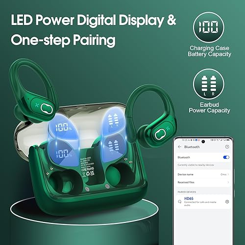 75 Hours Playtime and Dual LED Display: Running headphones provides up to 15 hours continuous using time on a single charge, portable charging case can charge the earbuds for 5-6 times, giving 75 hours of a total playtime. Whether on the road or in daily life, it will provide unparalleled convenience and smart experience. The dual LED display on earphones accurately display the remaining power of charging case and the charging progress of Wireless ear buds.