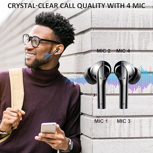 4 Built-in Microphones (ENC Noise Cancelling) for Clear Calls: Each earbud has 2 microphones with ENC noise reduction technology for effectively cancelling 90% of the reverse environmental noise, thereby reducing the environmental noise by up to 35dB, be heard clearly whenever you're on calls, video chats, live streams, etc.. help you to avoid the embarrassment of unclear voice calls, Perfect for home, offices or workouts. The wireless headphones is also a good gift choice for you.