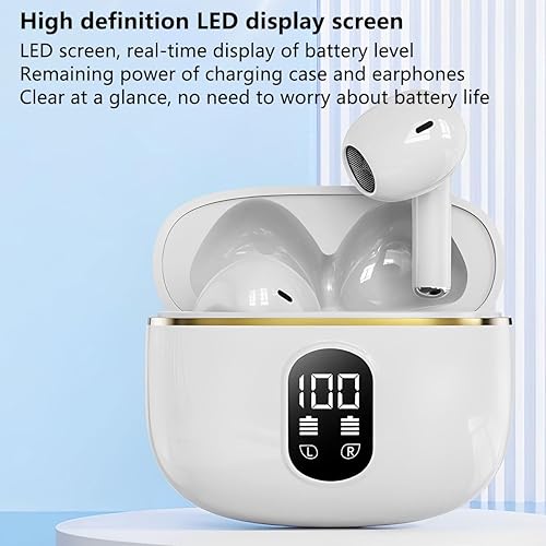 Wireless Earbuds,Bluetooth 5.3 in ear earphones,with high-definition voice,LED display screen,waterproof wireless microphone headphones,compatible with mobile phones and Bluetooth devices (black)(White)