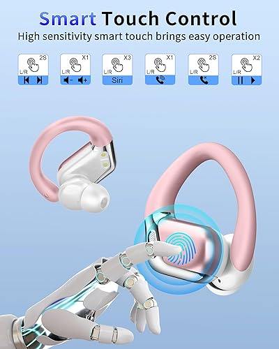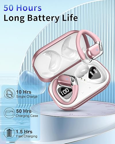 50H Playtime and Dual LED Display: Wireless earphones can provide up to 10 hours of music on a single charge, with the portable charging case, the total playtime can be extended to 50 hours. With the fast-charging Type-C port, sports earbuds can be fully charged in just 1.5 hours. The dual LED display on gym headphones accurately display the remaining power of charging case and the charging progress of Wireless ear buds.