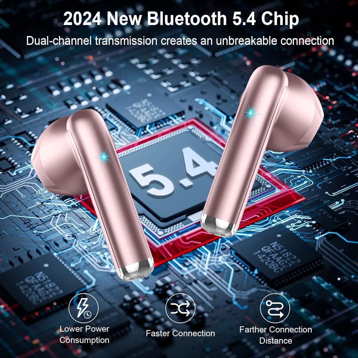 Innovative Bluetooth V5.4 Technology and Instant Pairing: The wireless earbuds adopt Bluetooth 5.4 technology, which ensures a more stable connection, lower delay and lower power consumption. With a range of up to 15m, you don't have to worry about disconnection of the bluetooth earbuds. After the first time you turn wireless headphones on, the earbuds wireless bluetooth automatically go into pairing mode, then they automatically pair with the last device you used.
