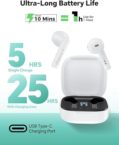 Ultra-Long Battery Life: These bluetooth headphones last up to 5 hours on a single charge, and the charging case provides an additional 4 charges, for a total of over 25 hours, allowing you to listen from morning to night without worrying about battery life. Whether you're commuting, at the office, or at the gym, your music is always with you