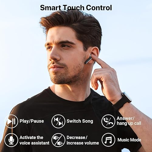 [ Smart Touch Control ]: Master your music and calls without touching your phone! Triple-tap to talk to Siri, press and hold to adjust volume, or double-tap to skip tracks. For even easier use, we has expanded the touch control area on each earbud for more precise and reliable commands, make you easier to use it!
