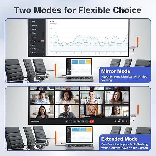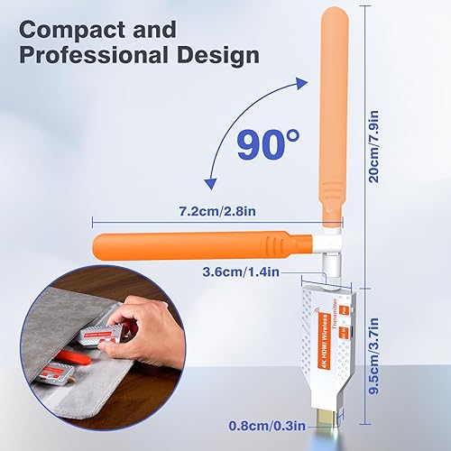 【350FT Long Range Performance】 This wireless display adapter stream in stunning ultra HD up to 350FT outdoors (100M), almost no latency, perfect for business meetings, wedding DJs, or outdoor movies. (Note: Transmission distance and speed may be affected when the product passes through walls or encounters obstacles)