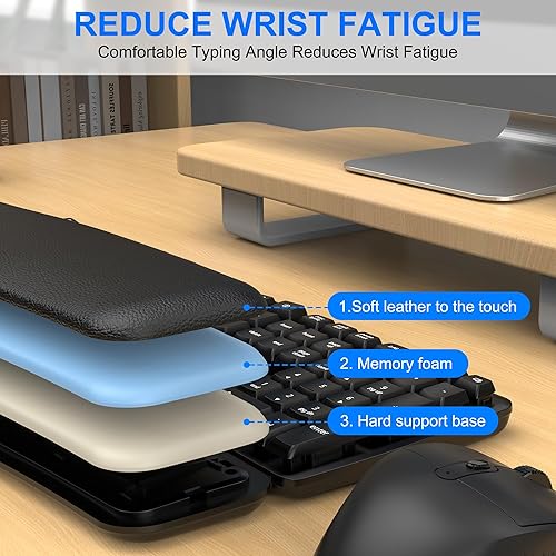 【Wave Ergonomic Wireless Keyboard and Mouse Combo】 The wireless keyboard features wave keys and a soft wrist rest design, which naturally fits the fingers and eases wrist tension. The adjustable stand enables you to set the keyboard to the most comfortable height, making it an ideal choice for long-term use. Note: The USB receiver is located on the back of the mouse.