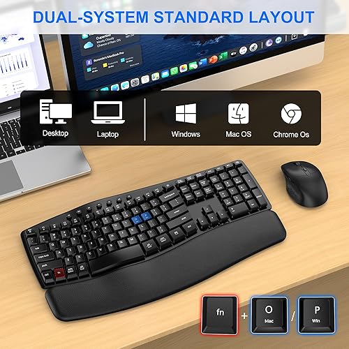 【Wide Compatibility and Dual System Layout】This wireless keyboard and mouse combo is compatible with Windows XP/Vista/7/8/10/11, Mac, and other operating systems. It’s suitable for desktops, Chromebooks, PCs, laptops, and more. You can switch between Windows and macOS by pressing FN+O or FN+P.