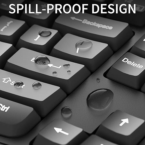 【Ergonomic Design】 The scientific wave keys design allows easy finger access to all keys, ergonomic curved surface layout for natural typing posture, maximizing hand comfort for long hours of work. Scientific ergonomic design mouse for smoother movement and less overall strain, providing a comfortable using experience like never before.