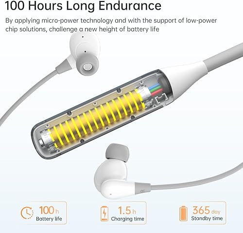 【100 Hours Playback】: The wireless neckband headphones are equipped with a lithium-ion large-capacity battery and a low-power smart chip, with a total use time of more than 100 hours and a high battery life to meet the user's power needs. The wireless headphones are also equipped with a display percentage battery and a volume adjustment display, which can always keep an eye on power changes and complete intelligent charging.