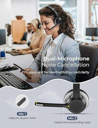 CRYSTAL CLEAR SOUND &NOISE-CANCELING MIC: HD voice for crystal-clear calls and music for better concentration on the conversation. This wireless headset with CVC8. 0 noise-canceling mic to monitor and counter ambient noise for meeting open office & outdoor requirements, 270° rotatable design to suit Adjustable leather headband for a personalized fit. Moreover, 90-degree rotatable ear cups make the business headset perfect for space-saving storage. Does NOT contain a base station.