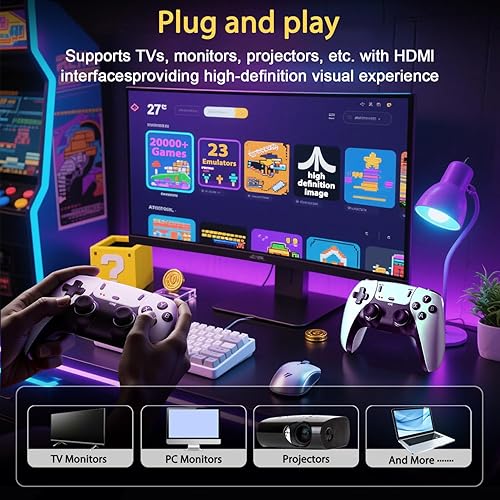 【Built-in 20000+ Classic Games】Dive into a treasure trove of gaming history with our retro gaming console, featuring over 20,000 built-in games and 23 emulators. No network or download required, plug and play - start the game immediately.