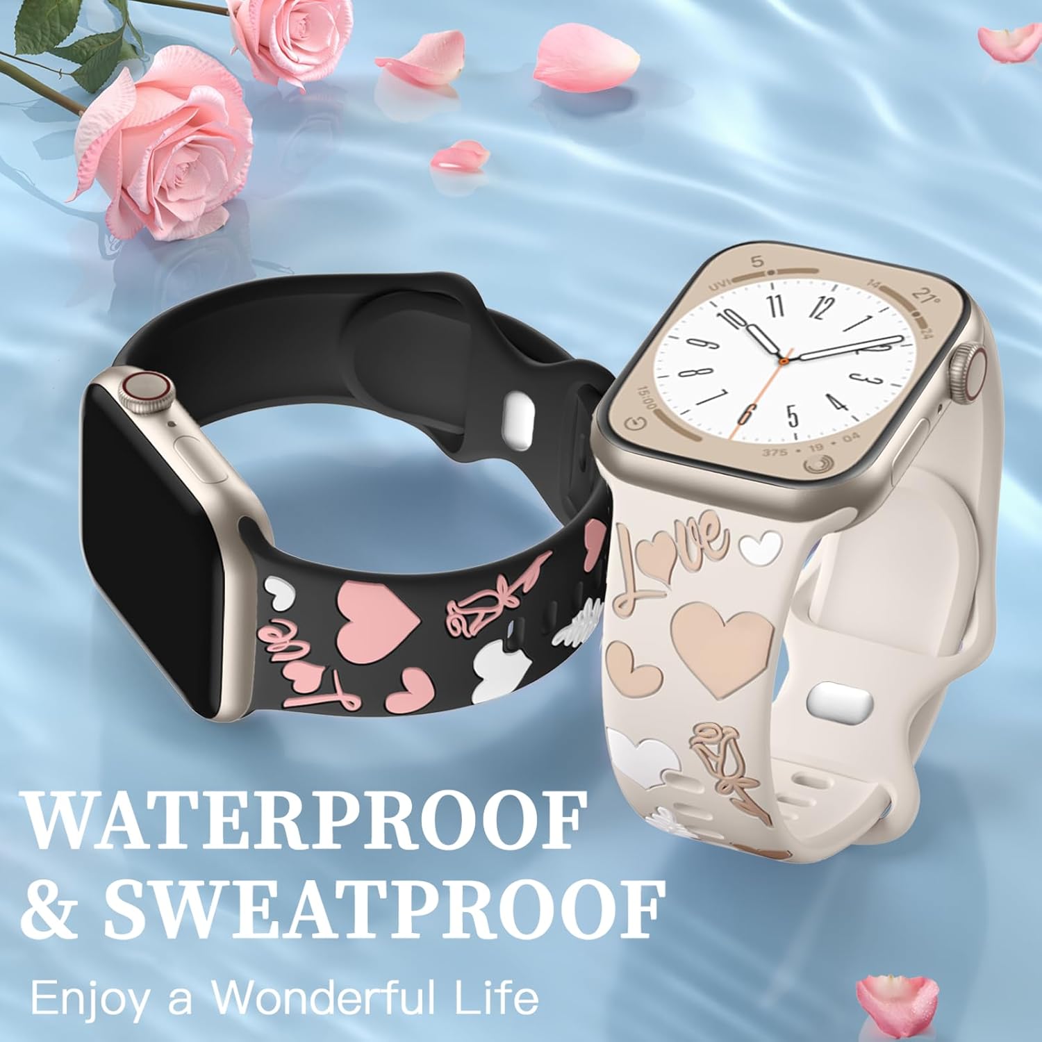 Cute Floral Design with Lasting Beauty - Witzon apple watch bands for women features exquisite heart and rose pattern , blending cute charm with lightweight elegance. Made with an exclusive multi-tone silicone inlay, the design stays vibrant and fade-resistant—enhancing both its beauty and durability. Whether being in daily life, anniversary, or just brightening your workday. More than a band, it's a delicate statement piece guaranteed to get compliments from friends and family