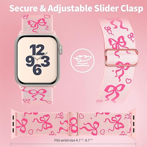 Comment on "WKC 6 Pack Loop Band Compatible with Apple Watch Band 38mm 40mm 41mm 42mm 44mm 45mm 46mm 49mm, Cute Bow Pattern Soft Elastic Braided Strap for iWatch Series 10 9 8 7 6 5 4 3 SE Ultra Women Girl(Pink Blue Red Black,38mm/40mm/41mm/42mm(Series 10))"