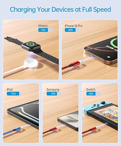 Comment on "Wtinquik Travel Essentials, Multi Fast Charging Cable for Apple Watch Charger/iPhone Charger, 3 in 2 USB C Cable Cord Compatible with iWatch Ultra/SE/10-1/iPhone 16-11/Samsung S25-22 ,5FT , Gray(B-Colorful,5FT)"