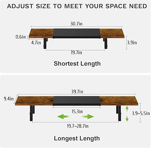 Adjustable Height and Length:The monitor stand riser features 3 levels of height adjustment and extendable length to meet your space need. The spacious undershelf of this wood monitor stand offers ample storage space to organize office supplies,perfect for workspace setup.
