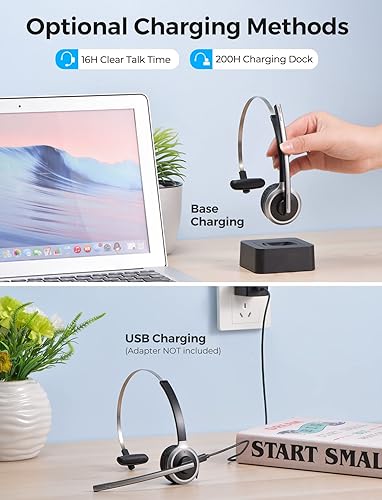 Weeks of Power, Zero Charging StressSay goodbye to battery anxiety. Our wireless computer headset gives you up to 16 hours of talk or music time on a single charge. The real game-changer is the charging base, which holds enough power to recharge the headset multiple times, providing a staggering total of 216 hours of working time. That's enough juice to keep you productive for weeks without needing a power outlet.