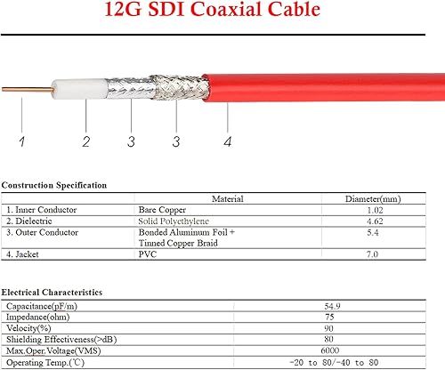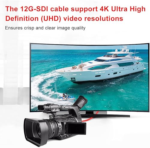 The 12G-SDI cable offers an impressive high data transfer rate of 12 gigabits per second (Gbps), ensuring smooth handling of HD, 3G, 6G, and 12G SDI video signals and making it suitable for demanding applications in broadcast and video production.