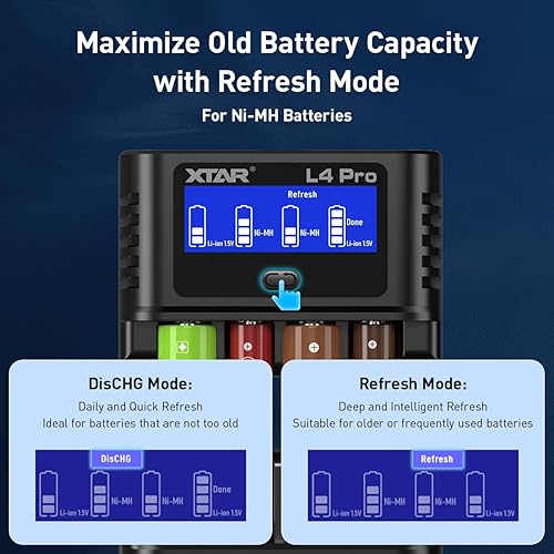 XTAR L4 Pro aa Charger with Batteries 8pcs AA 4150mwh Rechargeable Lithium aa Batteries