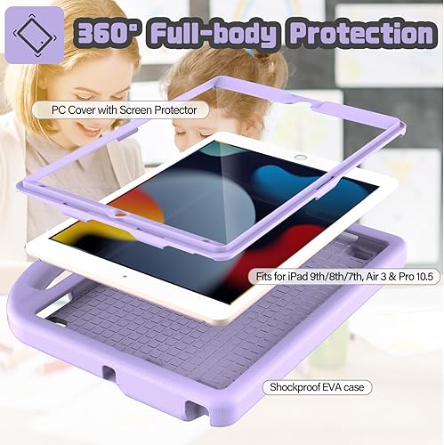 YIHE Kids Case for iPad 9th/8th/7th Generation, iPad Pro 10.5 & Air 3, Shockproof Protective Cover with Handle Stand & Screen Protector for 10.2/10.5 Inch iPads, Light Blue(LightPurple,iPad 9th/8th/7th Gen 10.2“ /Air 3/Pro 10.5'')