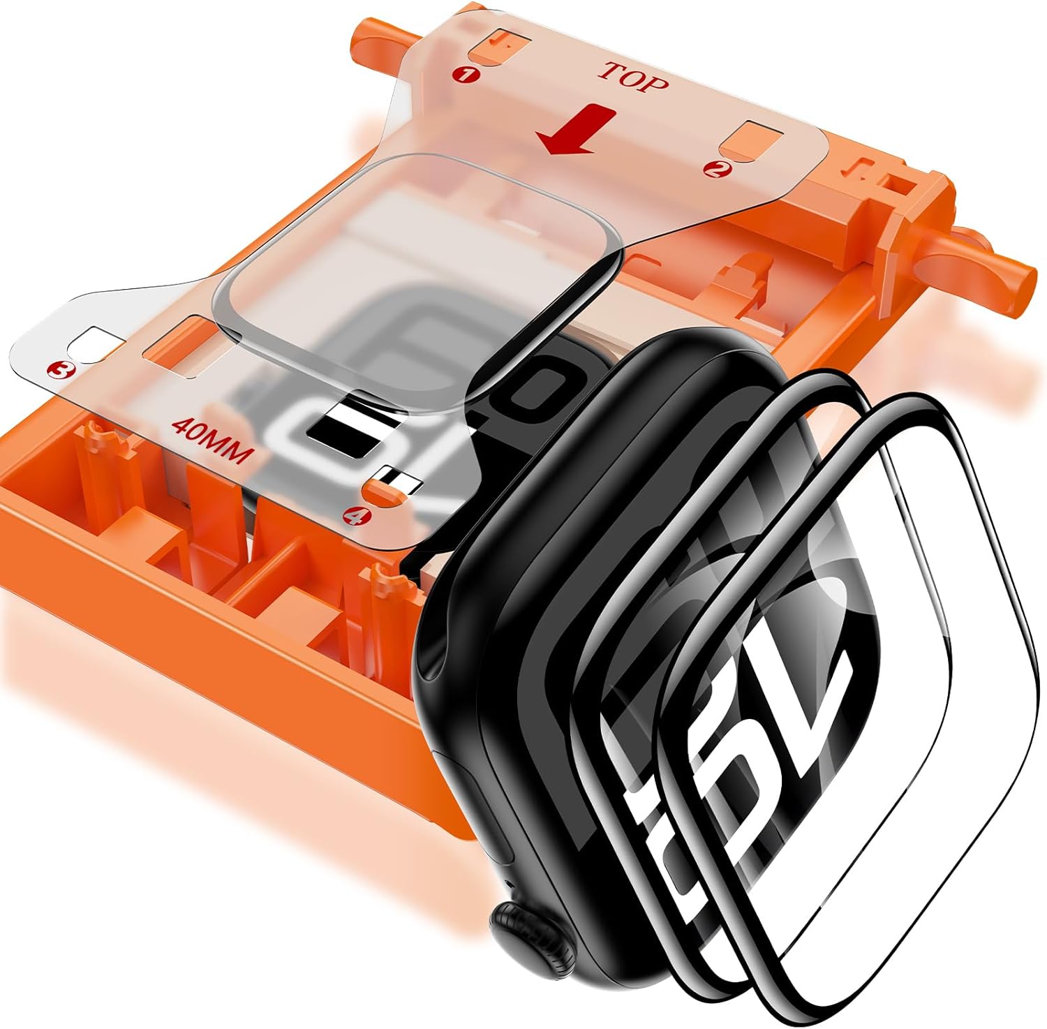 [ Zero-Bubble Easy Installation]: YMHML innovative Apple Watch 40mm screen protector installation kit, the best solution for curved glass screen protector for apple watch, 0 failure and 0 bubbles.