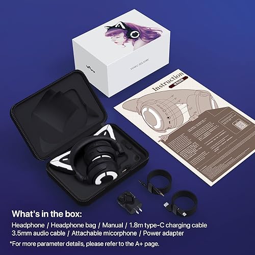 A Perfect Gift - Yowu 4th generation Cat Ear Gaming Headsets comes with a premium package that includes fully customized carrying case, audio cable, and charging accessories, making them the perfect gift for yourself and loved ones. YOWU offers a 1-year warranty with ongoing after-sales service, including 24-hour customer support, dedicated to enhancing your shopping experience.