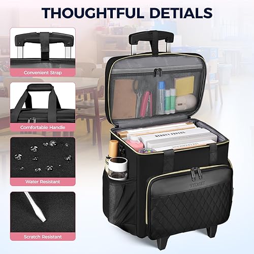 Set Includes Tote: Rolling teacher bag with wheels includes a portable teacher file tote bag (11.75" L x 11" W x 4" H) , you can store various items according to different needs, teacher items such as laptop, books, file, and personal items such as lunch box, mobile phones, water glasses, umbrellas and other teacher essential