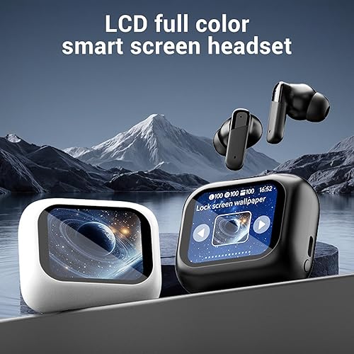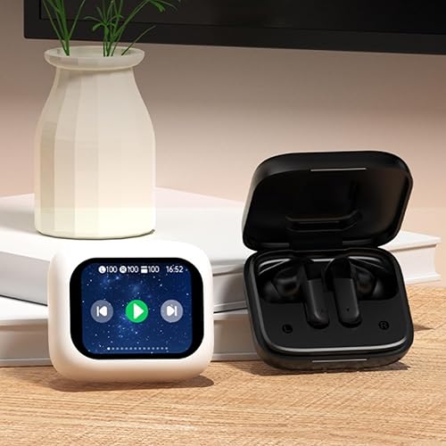 Yunseity Noise Cancelling Wireless Earbuds, HiFi Surround Sound 5.4 Earphones with LCD Full Color Touch Screen, Powerful Bass, 45H Playtime (Black)(White)