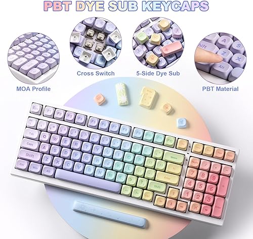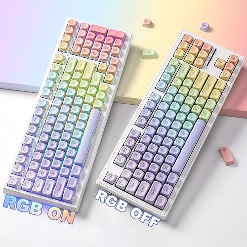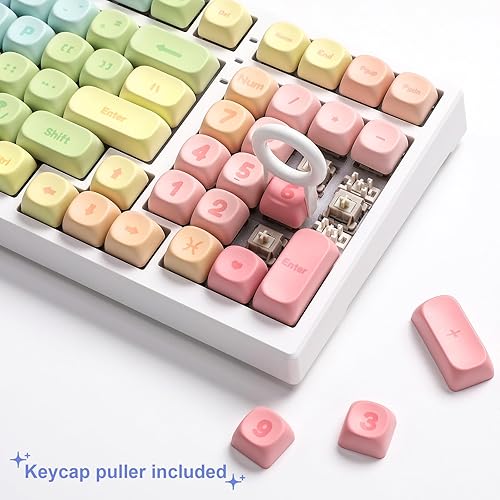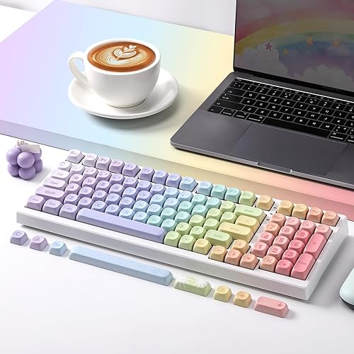 YUNZII 140 Keys MOA Keycaps, Dye-Sublimation PBT Custom Keycap Set for MOA Profile, Cute Rainbow Candy Keycap for MX Switches Mechanical Gaming Keyboard(Rainbow)(Rainbow)