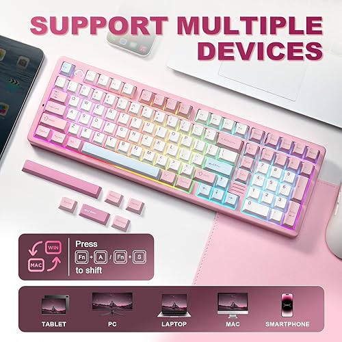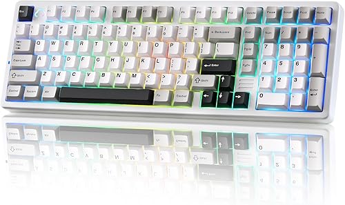 Tri-Mode Connectivity & Extended Battery Life: YUNZII AL98 wireless gaming keyboard features versatile tri-mode connectivity (Bluetooth 5.0/2.4GHz/USB-C) with seamless switching between up to 5 devices and and multiple systems (including Windows, Mac, Android, etc.). A built-in 8000mAh battery delivers exceptional endurance for both extended work sessions and immersive gaming, this wireless keyboard can free you from frequent charging interruptions