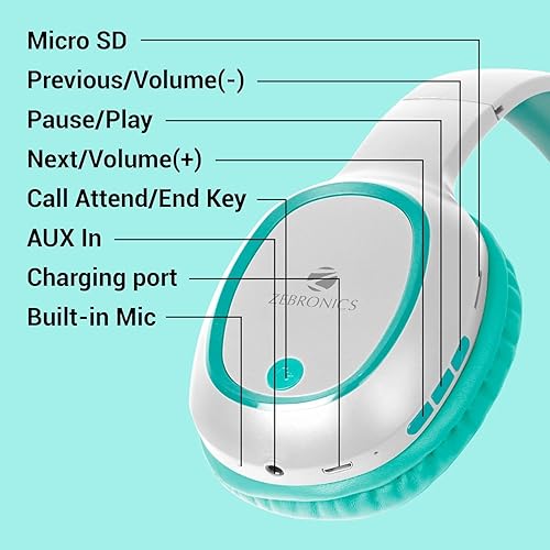 Z.EB.ro.nics Gaming Headphones, White and Turquoise, Over-Ear Design with Cushioned Earpads, Adjustable Headband