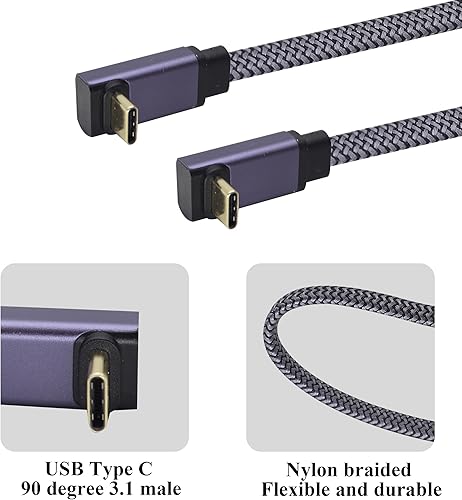 Size:Length (60CM/24 inch)Colour:(Black+gray) Package Quantity:(1pack) Material: plastic & metal USB type C 3.1 connector+Nylon braided outer layer, Connector: Up&Down angled 90 degree USB 3.1 Type C male to Up&Down angled 90 degree USB 3.1 Type C male Gen 2 (10Gbps) full function flat extension cable(3A)