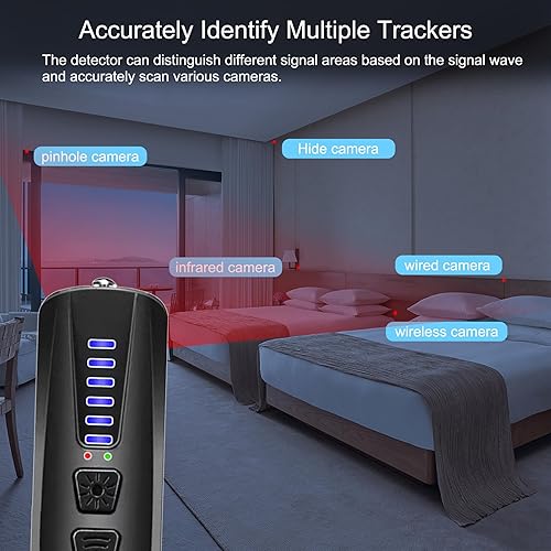 Wide Compatibility:Capable of detecting wireless signals from 100MHz to 8GHz, including spy cameras, Wi-Fi devices, and GPS trackers. It also supports signal scanning for pinhole cameras and comes with a magnetic sensor for locating tracking devices. The built-in flashlight and 5 levels of adjustable sensitivity allow flexible use in various scenarios.