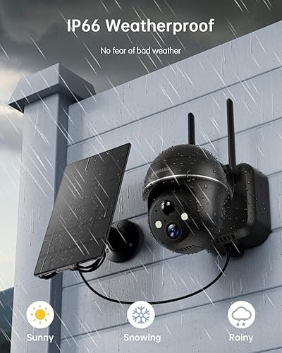 Solar Powered & Rechargeable Battery: Upgraded large-capacity rechargeable battery & higher efficient solar panel quickly achieve 365 days non-stop protection. No trouble climbing up and down to take off the outdoor camera wireless. Say goodbye to tangled cables, power outages, and extra electricity costs