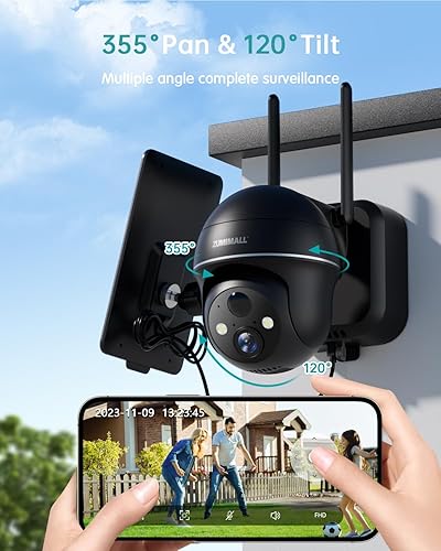 ZUMIMALL Solar Security Cameras Wireless Outdoor, 2K Camera for Home Security with 3MP Color Night Vision, 2.4GHz WiFi, 2-Way Talk, Spotlight & Siren, IP66 Weatherproof, Compatible with Alexa
