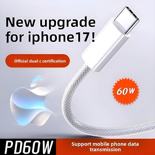 usbc to usbc Fast Charging Cable Fast Charger Cord 60W Type C to Type C Cable Suitable for iPhone 17/16/15 Pro Max Plus 16E, iPad Air/Pro,Braided USB c Cable 6ft 2Pack