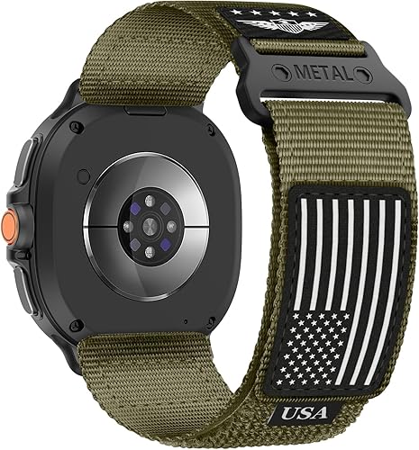 Rugged Nylon Bands for Samsung Galaxy Watch 8 Classic 46mm/Galaxy Watch 8 Band 44mm 40mm for Men,Soft Fabric Adjustable with Stars-Stripes Flag Wristbands Sport Strap for Galaxy Watch 8/8 Classic