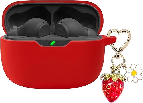 for JBL Vibe Beam/JBL Vibe 200TWS Case Cover,Cute Strawberry Charm Keychain,Soft Silicone Protective Case Daisy for JBL Vibe 200TWS & JBL Vibe Beam Headphones Charging Case Earbuds Pink