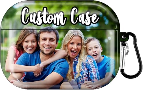 Custom Photo Case for AirPods Pro Add Your Personalized Picture Name Logo Customized Air Pod Hard PC Cover Shell with Keychain Carabiner Protective Glossy Skin Gift for Family Friends