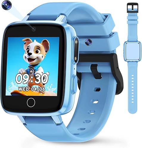 Kids Smart Watch for Girls Boys Ages 4-12, 1.54" HD Touchscreen Watches with 26 Games, Camera, Video Recorder, Music, Pedometer, Alarm Clock Calendaring, Flashlight, IP67 Waterproof Birthday Toys Blue
