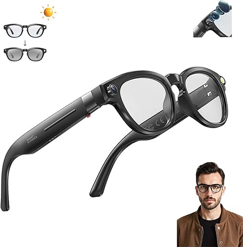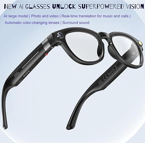 Ai Smart Glasses, 2026 Upgrade 8mp Camera Glasses with Music & Call Features, Bluetooth, AI Translator, Automatic photochromic Lenses, Anti-Shake, Everyday Wear (Black)