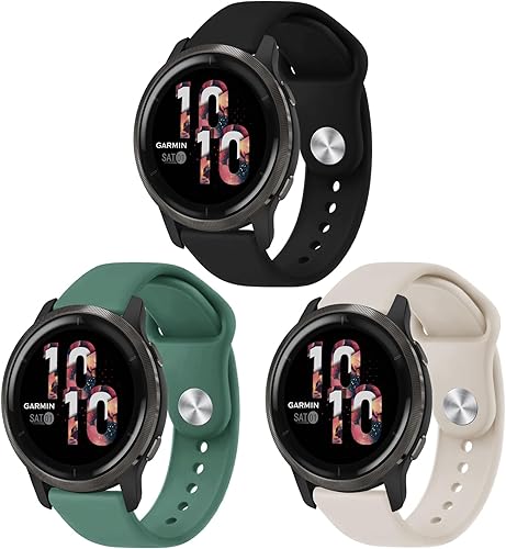 3 Pack Silicone Watch Bands Compatible with Garmin Vivoactive 4/Venu 3/Venu 2, 22mm Soft Sport Replacement Wristband Straps for Garmin Forerunner 745/Forerunner 265/255/255 Music Men Women