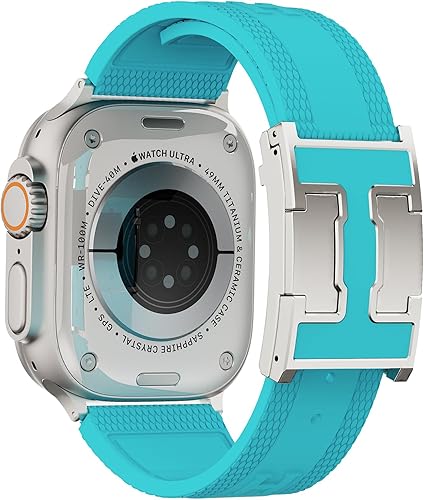 FKM Fluoroelastomer Rubber Band Compatible with Apple Watch for Men 49mm 44mm 46mm 45mm 44mm 38mm 40mm 41mm 42mm,Soft Waterproof Watch Strap Women for iWatch Series 11 9 8 7 6 5 4 Ultra SE 3 2 1