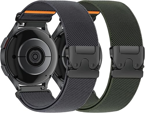 Elastic Nylon Bands for Samsung Galaxy Watch 7/6/5/4/FE 40mm 44mm/Galaxy Watch 6 Classic 43 47mm/5 Pro 45mm/4 Classic 42 46mm/Active 2,20mm Quick Release Wristband Stretchy Nylon Sport Strap Men