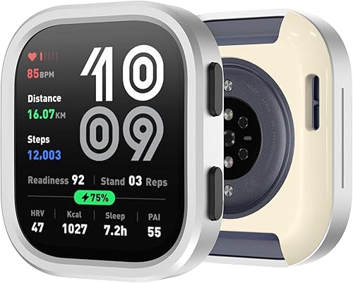 BEARDDO Metal Protector Case for Amazfit Bip 6 Smartwatch, 2 in 1 Stainless Steel Bezel & TPU Back Cover Full Protective Cover Cases Scratch-Proof Rugged with Cleaning Cloth Accessories (Titanium)