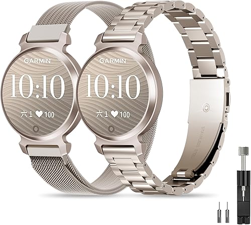 Metal Watch Bands Compatible with Garmin Lily 2 Active/Lily 2 for Women,14mm Slim Adjustable Mesh Magnetic Clasp Stainless Steel Chain Replacement Bracelet for Lily 2 Classic Accessory