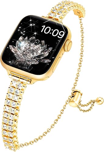 Slim Bling Band Compatible with Apple Watch Bands for Women 38mm 40mm 41mm 42mm 44mm 45mm 46mm 49mm, Dressy Metal Bands for Apple Watch SE Band Series 11 10 9 8 7 6 5 4 3 2 1, Ultra 3/Ultra 2/Ultra