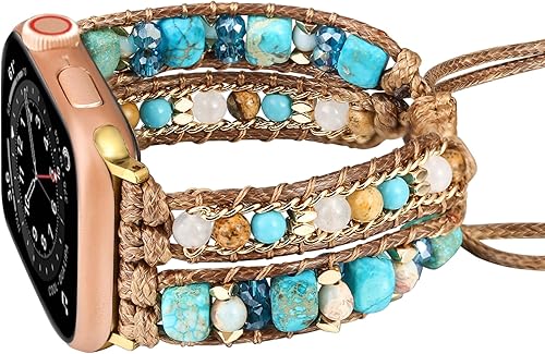 Boho Bracelet Compatible with Beaded Apple Watch Band 41mm/38mm/40mm 49mm/45mm/46mm/44mm/42mm - Handmade Multilayer 5 Wrap Apple Watch Strap for Women Men Natural Stone iWatch Band Series 11 10 9 8 7 6 5 4 3 2 1 SE3 Ultra 3
